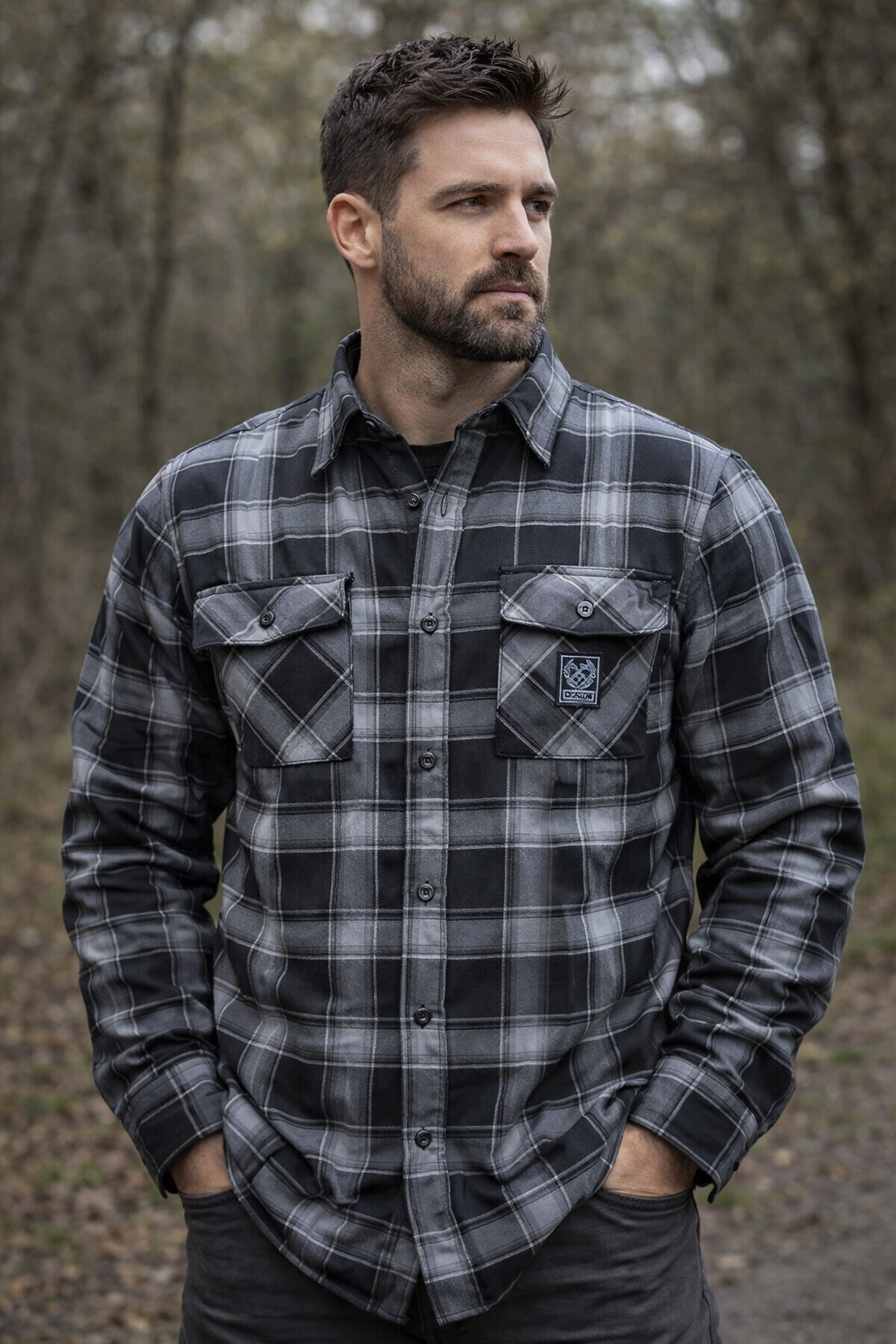 - Faux leather Dixxon brand tag on the left chest pocket